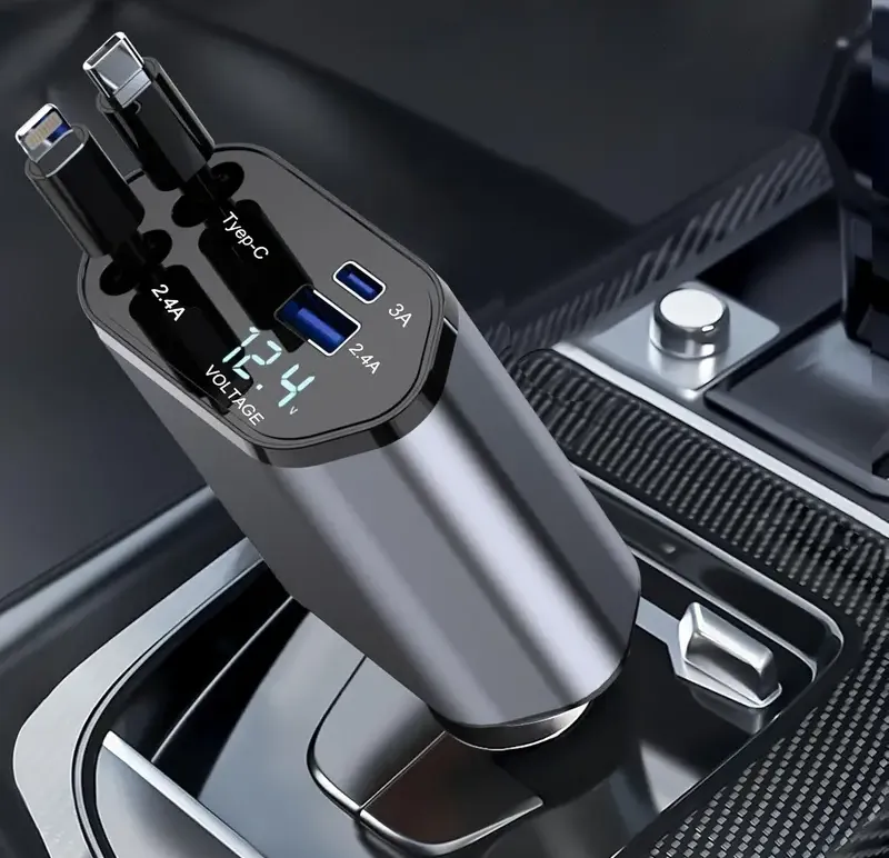 شاحن سيارة :شاحن Varkee الرباعي هو الحل الأمثل لشحن جميع أجهزتك في وقت واحد! تم تصميمه بتقنية **شحن سريع تصل إلى 24 واط**، مع توزيع ذكي للطاقة (2.4A ل...
