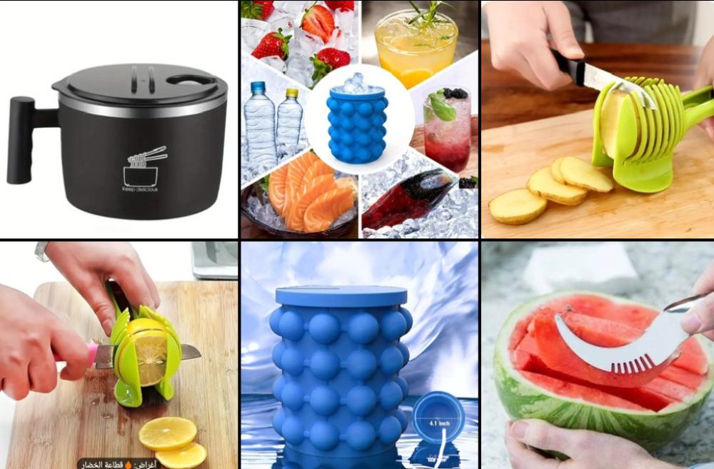 بوكس أدوات المطبخ مجموعة من أربع أدوات لإضفاء لمسات ذكية على مطبخكصانعة الثلج اليدويةاداة تقطيع البطيخصانعة الاندومي بلا ناراداة قطع الخضروات والطماطم...